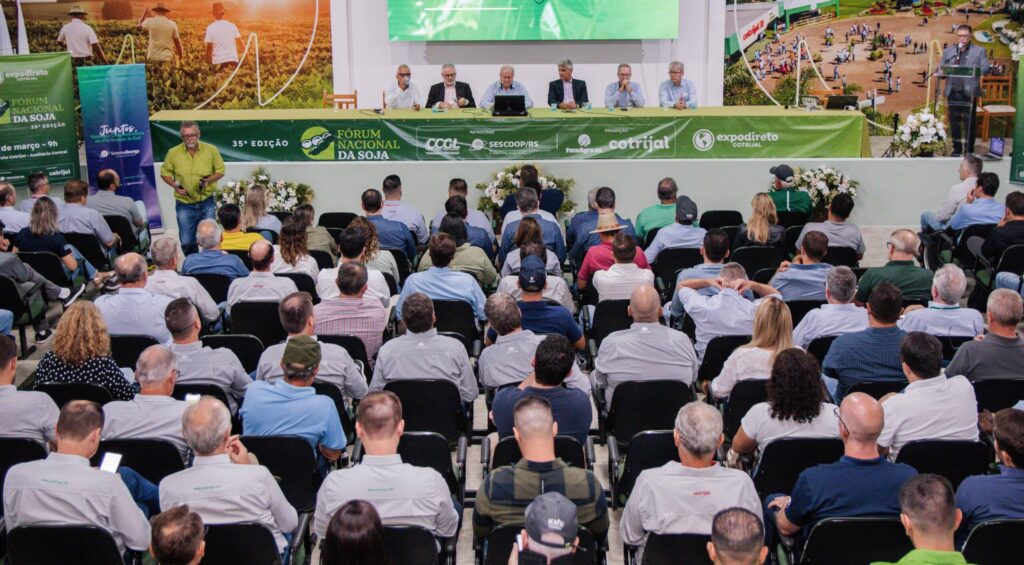 O Fórum Nacional da Soja chegou a 35ª edição nesta terça-feira (11), durante a 25ª edição da Expodireto Cotrijal, em Não-Me-Toque/RS. O evento, que é um dos principais da agronegócio brasileiro, reuniu centenas de participantes para discutir as perspectivas para a cultura e para o mercado da soja, principalmente diante das frustrações climáticas no Sul do Brasil e das mudanças na geopolítica mundial.