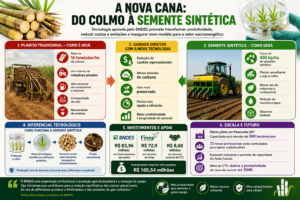 O modelo tradicional de plantio da cana-de-açúcar pode estar diante de uma transformação estrutural. Com apoio financeiro do BNDES, o Centro de Tecnologia Canavieira (CTC) avança no desenvolvimento de sementes sintéticas que prometem redefinir a forma de implantação dos canaviais no Brasil, com impactos diretos em produtividade, custos e sustentabilidade.
