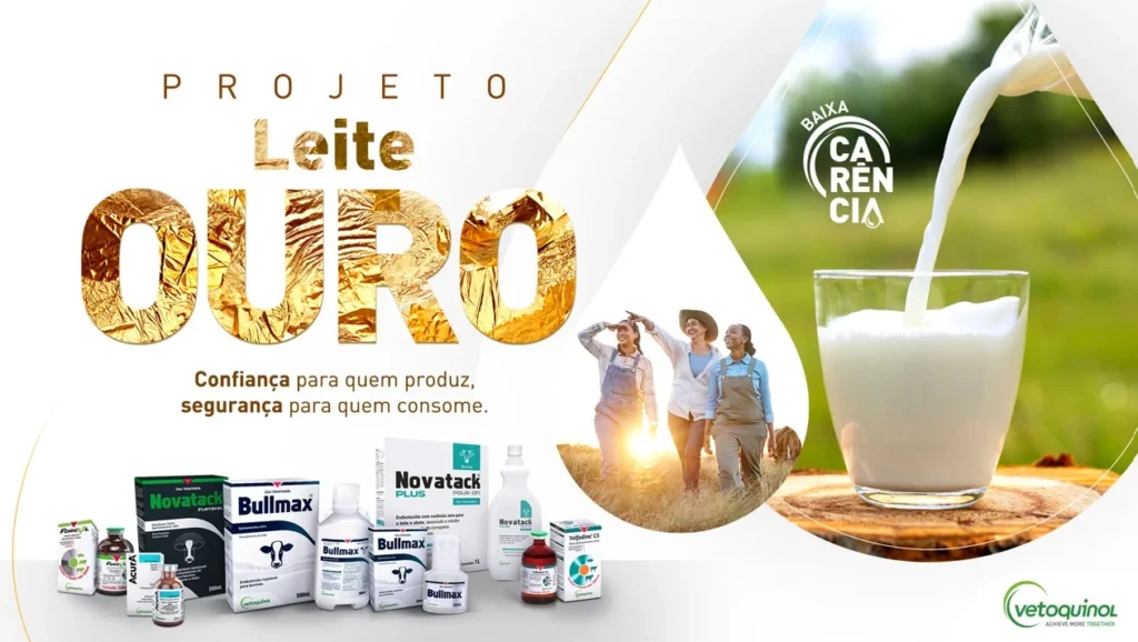 A Vetoquinol, oitava maior indústria global de saúde animal, anuncia o lançamento do Projeto Leite Ouro, iniciativa que reúne suas principais soluções voltadas à saúde de bovinos leiteiros, com foco na promoção da segurança alimentar e aumento da eficiência produtiva nas propriedades rurais. O projeto oferece tecnologias desenvolvidas para todas as fases produtivas dos animais, com destaque para medicamentos de baixa ou zero carência, que minimizam o descarte de leite durante os tratamentos. Isso se traduz em maior rentabilidade para o produtor e maior segurança para o consumidor final.